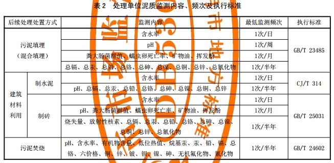 b) 擬采取填埋、建筑材料利用及焚燒的泥質(zhì)監(jiān)測應按表 2 執(zhí)行。
