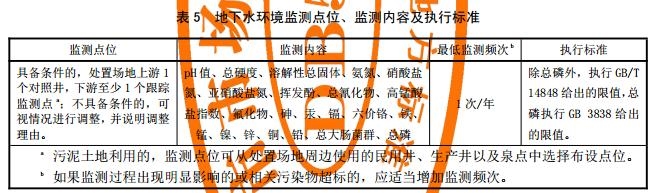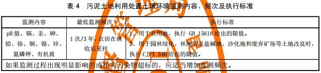 污泥填埋處置的,應按GB 18599、GB 16889開展環(huán)境影響跟蹤監(jiān)測;污泥土地利用處置的,處置過程結(jié)束后應按表5開展環(huán)境影響跟蹤監(jiān)測,監(jiān)測周期不應低于10年;采用其他處置方式時,則執(zhí)行與其對應的相關(guān)標準。