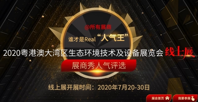 截至2020年7月30日閉展,只要你是“2020粵港澳大灣區(qū)生態(tài)環(huán)境技術(shù)及設(shè)備展覽會(huì)—線上展”參展企業(yè)均可參與“展商秀人氣評選”活動(dòng),評選方式、參與方式、“人氣王”福利,趕快進(jìn)入頁面(←點(diǎn)擊進(jìn)入在線展館)了解吧。