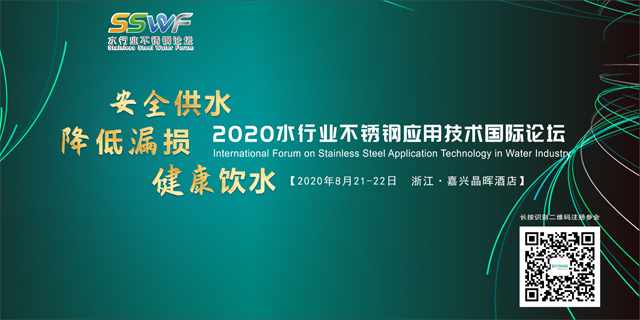 以“安全供水,降低漏損,健康飲水”為主題“2020水行業(yè)不銹鋼應用技術國際論壇”將于2020年8月21-22日在浙江嘉興舉辦,大會由國際鎳協(xié)會、東華大學環(huán)境科學與工程學院、浙江省城市水業(yè)協(xié)會設備材料工作委員會聯(lián)合承辦,嘉興市清源智慧水務科技創(chuàng)新研究院和盈聞會展(上海)有限公司承辦,并獲得中國建筑裝飾裝修材料協(xié)會金屬裝飾材料分會、華東地區(qū)給水排水技術信息網(wǎng)、江蘇省土木建筑學會給水排水專業(yè)委員會及山東土木建筑學會建筑給排水專業(yè)委員會等行業(yè)組織的大力支持!