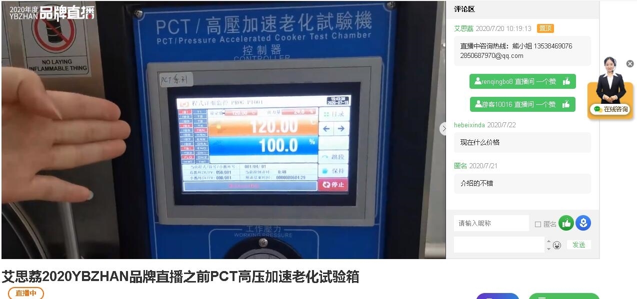 高天(←點(diǎn)擊進(jìn)入)直播間為大家?guī)砹斯局鳡I產(chǎn)品恒溫恒濕試驗(yàn)箱和冷熱沖擊試驗(yàn)箱的介紹。