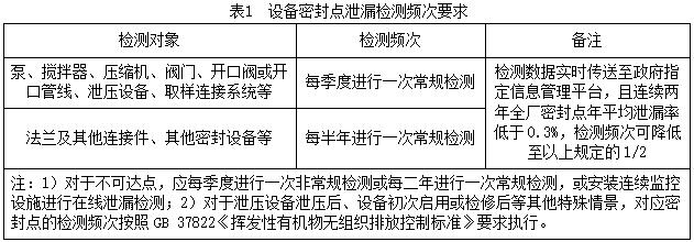 應(yīng)按表1頻次要求對設(shè)備密封點進(jìn)行檢測。