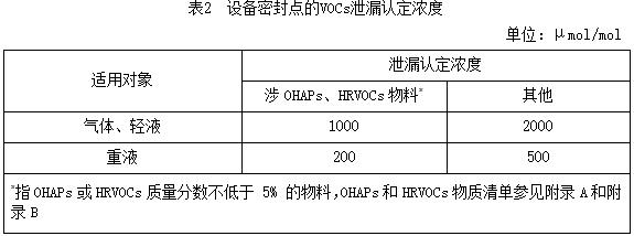 b)密封點的VOCs泄漏檢測值超過表2規(guī)定的泄漏認(rèn)定濃度值。