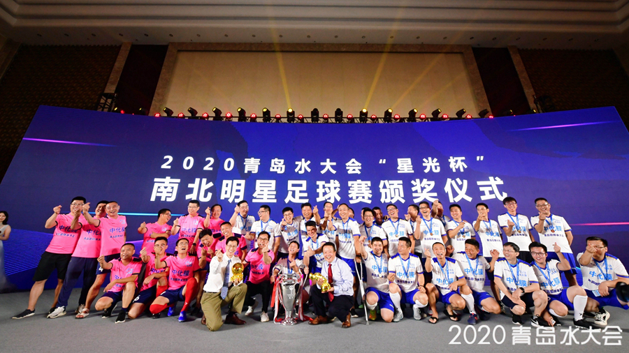 第四屆水業(yè)中國星光獎-產(chǎn)品之星、工程之星、公益之星、青年精英等獎項(xiàng)獲得者也都揭開了謎底,將歡迎會推向了高潮。歡迎會上還舉行了2020青島國際水大會“星光杯”南北明星足球賽頒獎典禮,金靴獎、金球獎及冠軍獎杯各歸其主。