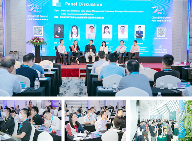 參會者有企業(yè)分管環(huán)安、廠務(wù)、EHS的高層管理者代表, EHS部門及其下屬部門的管理人員;也有EHS相關(guān)咨詢機(jī)構(gòu)的代表;學(xué)術(shù)機(jī)構(gòu)的EHS領(lǐng)域?qū)<?;各制造業(yè)、電子電氣、快消品、醫(yī)療汽車等行業(yè)內(nèi)EHS負(fù)責(zé)人;EHS新設(shè)備、新技術(shù)的提供方等;還包括EHS領(lǐng)域相關(guān)媒體。會議氣氛熱烈,會議期間就“新環(huán)保形勢下品牌與企業(yè)固廢管理經(jīng)驗(yàn)分享及創(chuàng)新實(shí)踐”這一課題組織了專題討論。 參與此討論的嘉賓有德國萊茵TÜV大中華區(qū)可持續(xù)服務(wù)業(yè)務(wù)線副總經(jīng)理陳慶先生,歐萊雅亞太環(huán)境副總監(jiān)諶振女士, 新加坡賽得利集團(tuán)安環(huán)總監(jiān)馬馳先生,翠豐集團(tuán)可持續(xù)發(fā)展專家馬一春先生以及戴爾科技集團(tuán)可持續(xù)發(fā)展項(xiàng)目經(jīng)理王凱琦女士。在此環(huán)節(jié),各位嘉賓都結(jié)合自身業(yè)務(wù)發(fā)展情況分享了諸多固廢處理實(shí)踐案例。