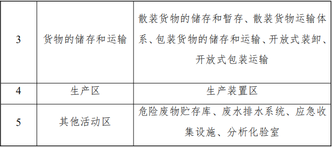可參考表2,識(shí)別涉及有毒有害物質(zhì)的重點(diǎn)場所或者重點(diǎn)設(shè)施設(shè)備,編制企業(yè)土壤污染隱患重點(diǎn)場所、重點(diǎn)設(shè)施設(shè)備清單。若鄰近的多個(gè)重點(diǎn)設(shè)施設(shè)備防滲漏、流失、揚(yáng)散的要求相同,可合并為一個(gè)重點(diǎn)場所。