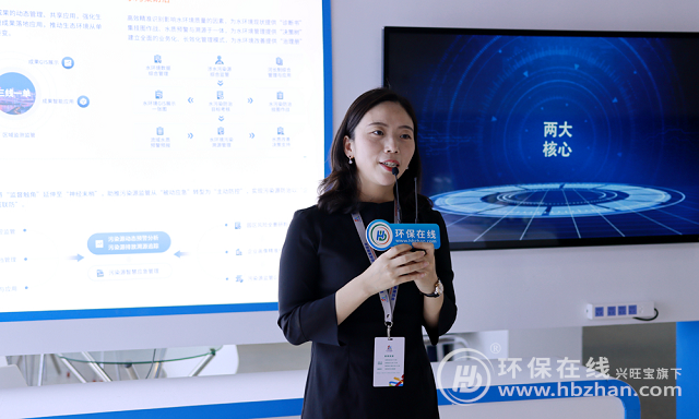 綠創(chuàng)科技高級(jí)項(xiàng)目經(jīng)理徐曼著重介紹了公司的集水質(zhì)預(yù)警與溯源于一體水污染防治系統(tǒng)、推動(dòng)生態(tài)環(huán)境從單一監(jiān)管型向立體管控型轉(zhuǎn)變的三線一單”數(shù)據(jù)管理系統(tǒng)。