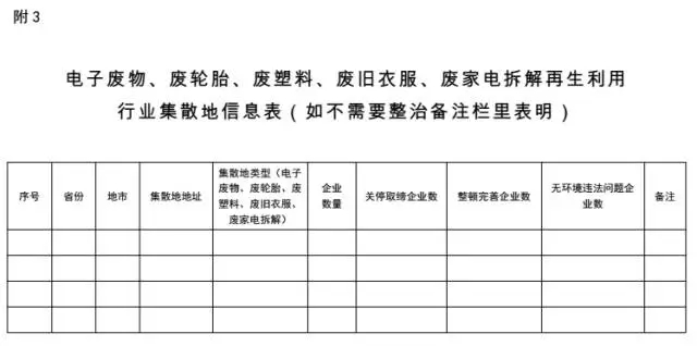 各省(區(qū)、市)按照清理整頓實(shí)施方案,先期開展本行政區(qū)域內(nèi)專項(xiàng)清理整頓摸排工作,并于2017年9月30日前將本省(區(qū)、市)再生利用企業(yè)信息表(集散地外)和集散地信息表(見附2、3)分別報送環(huán)境保護(hù)部、發(fā)展改革委、工業(yè)和信息化部、公安部、商務(wù)部和工商總局。
