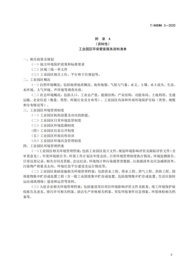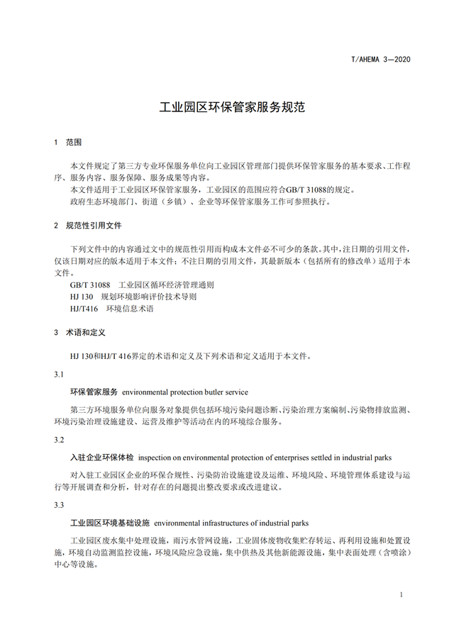 相關(guān)資料下載:T AHEMA 3-2020 工業(yè)園區(qū)環(huán)保管家服務(wù)規(guī)范.pdf
