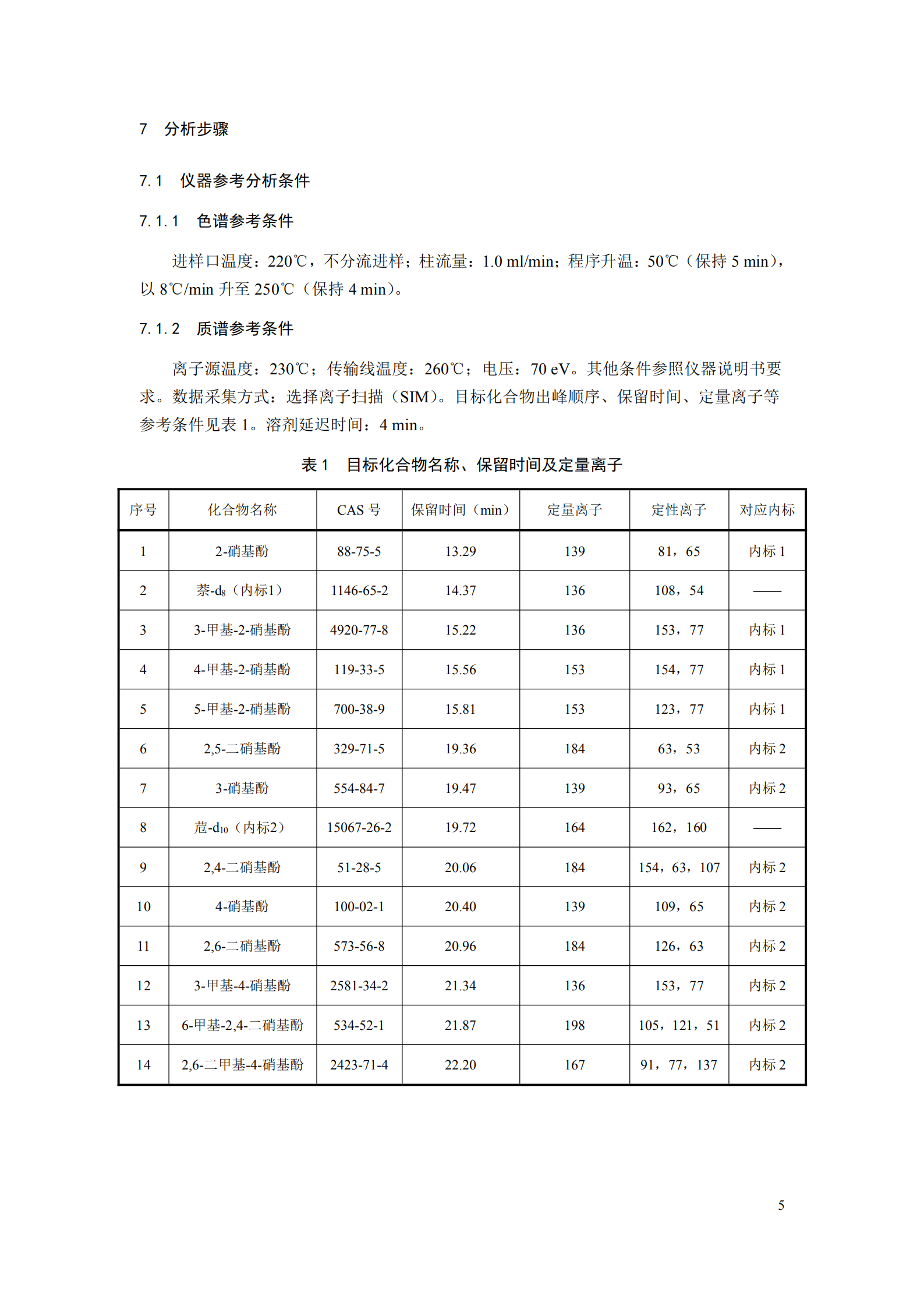 本標(biāo)準(zhǔn)規(guī)定了測定水中硝基酚類化合物的氣相色譜-質(zhì)譜法。