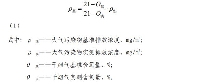 二、將4.7條內(nèi)容修改為:人工干燥及焙燒窯干煙氣基準(zhǔn)含氧量為18%,實(shí)測大氣污染物排放濃度應(yīng)按式(1)換算為基準(zhǔn)含氧量條件下的大氣污染物基準(zhǔn)排放濃度,并以此作為達(dá)標(biāo)判定依據(jù)。其他生產(chǎn)設(shè)施以實(shí)測排放濃度作為達(dá)標(biāo)判定依據(jù),不得稀釋排放。