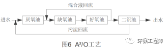 1980年,Rabinowitz和Marais對(duì)Bardenpho工藝的研究中,選擇3階段的Bardenpho工藝,即所謂的傳統(tǒng)A2/O工藝(見(jiàn)圖6)。至此最為常用的脫氮除磷工藝正式登場(chǎng)(距今已經(jīng)整整40年,目前還在大量使用)。
