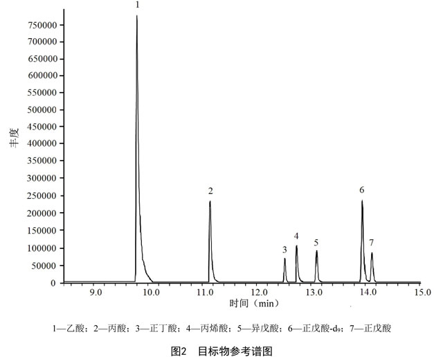 10.4 每20個或每批次(≤20個/批)樣品應(yīng)測定1個空白加標(biāo),乙酸回收率在45%~120%之間,其他羧酸回收率在60%~120%之間。