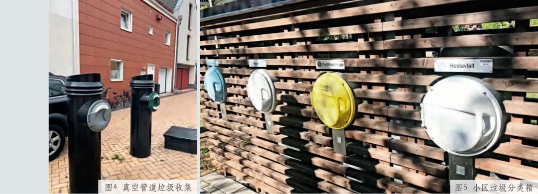 這類垃圾袋在超市、便利店、回收中心隨處可取。此外,管理部門在社區(qū)設(shè)有回收站,規(guī)模較大的區(qū)域設(shè)有回收中心,用于回收大件廢物?;厥罩行倪€安排有咨詢?nèi)藛T,引導(dǎo)前來(lái)丟棄廢物的市民按分類處置廢物。在哈馬碧和皇家海港新區(qū)等一些新建的社區(qū),已經(jīng)使用了真空管道等先進(jìn)的垃圾分類收集系統(tǒng)(圖 4)。