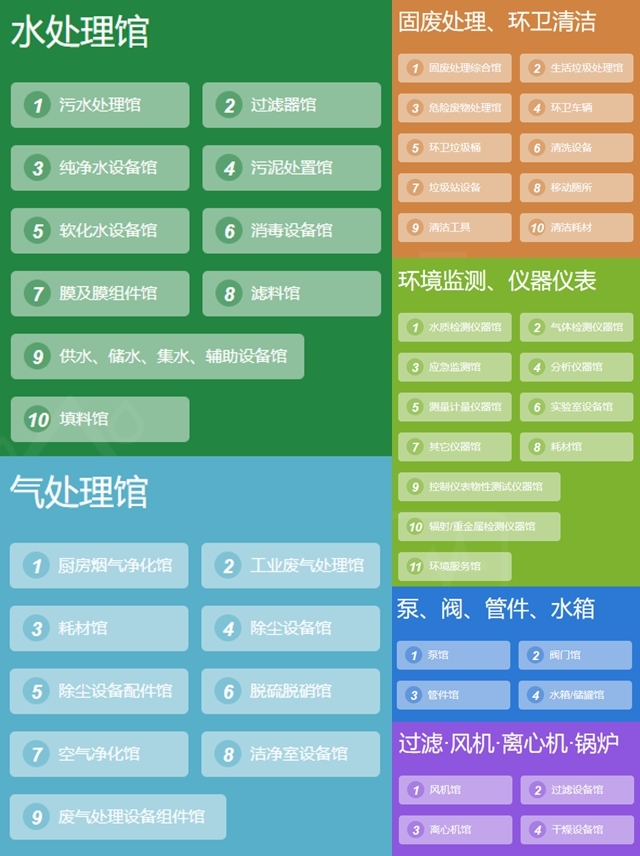 水處理館、氣處理館、固廢處理/環(huán)衛(wèi)清潔、環(huán)境監(jiān)測/儀器儀表、泵/閥/管件/水箱、過濾/風(fēng)機/離心機/鍋爐6大展館,全面專業(yè)的展區(qū)分類,更加清晰、一目了然,客戶能快速找到目標(biāo)產(chǎn)品或企業(yè),便于供需雙方的對接溝通。