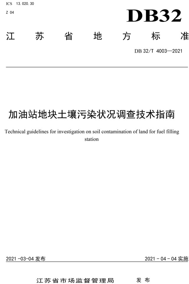 江蘇地方標(biāo)準(zhǔn):加油站地塊土壤污染狀況調(diào)查技術(shù)指南