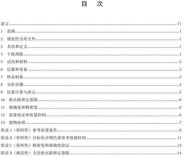 本文件規(guī)定了地表水中17種全氟化合物測定的干擾消除、試劑和材料、儀器和設(shè)備、樣品制備、分析步驟、結(jié)果結(jié)算與表示、檢出限和定量限、精密度和準(zhǔn)確度、質(zhì)量保證與質(zhì)量控制、廢物處理。