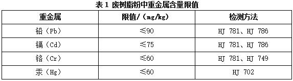 6.3.2.5企業(yè)應(yīng)對(duì)每批綜合利用的廢樹脂粉中重金屬的含量(如鉛、鎘、鉻、汞等)進(jìn)行檢測(cè),重金屬的限值與檢測(cè)方法按表1規(guī)定的執(zhí)行。利用廢樹脂粉生產(chǎn)建材的,再生產(chǎn)物除滿足國家、地方制定或行業(yè)通行的產(chǎn)品質(zhì)量標(biāo)準(zhǔn)外,其中有害物質(zhì)含量及浸出限值應(yīng)執(zhí)行HJ1091和GB 30760的要求。