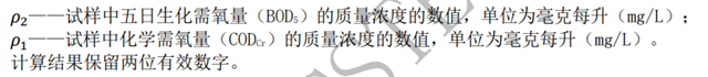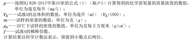 試樣中化學(xué)需氧量(CODCr)以質(zhì)量濃度ρ1計,單位以毫克每升(mg/L)表示,按式(1)計算: