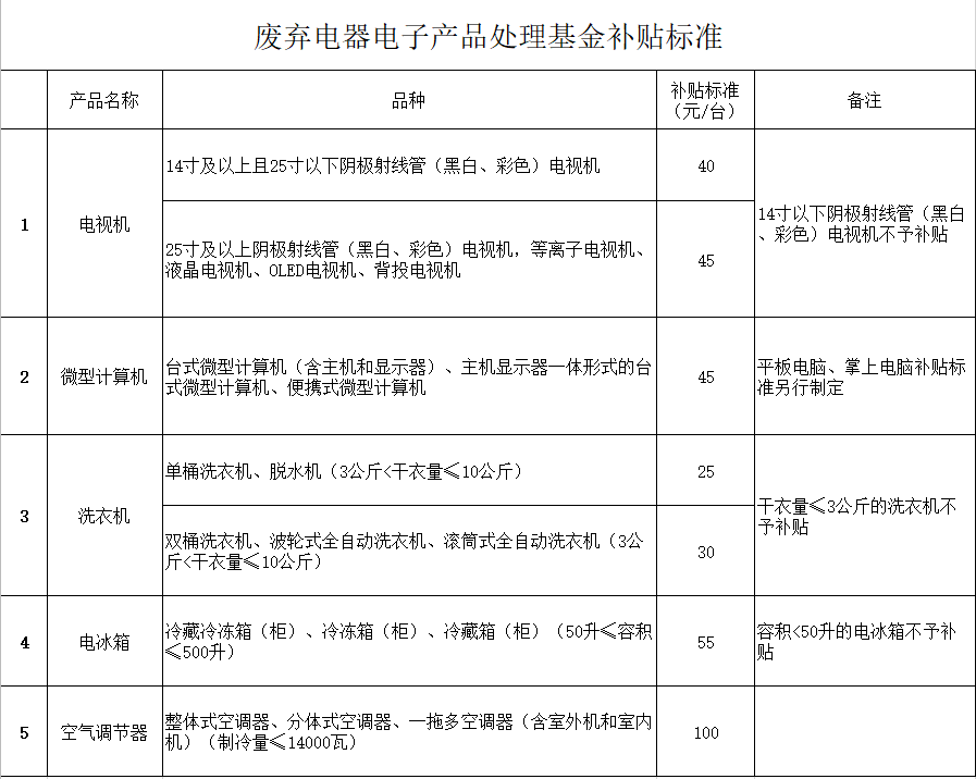 附件:廢棄電器電子產(chǎn)品處理基金補貼標準