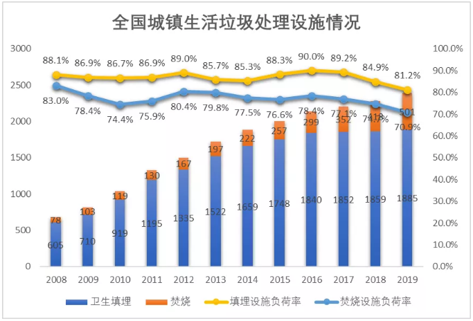 由于具有無害化、減量化和資源化等特點,垃圾焚燒發(fā)展迅速,垃圾焚燒發(fā)電廠數(shù)量以及垃圾處理量占比都呈持續(xù)上升趨勢,行業(yè)發(fā)展前景廣闊。已投入運營的生活垃圾焚燒廠數(shù)量則由2008年的78座增長至2019年的501座,平均每座生活垃圾焚燒廠的處理能力由683噸/日增長至1041噸/日,體現(xiàn)出我國生活垃圾焚燒處理設(shè)施逐漸大型化、成熟化、穩(wěn)定化的基本特征。而焚燒廠的運營負(fù)荷率始終保持在70~80%的較健康水平。部分生活垃圾焚燒廠未能達(dá)到滿負(fù)荷運營,其中原因較為復(fù)雜,主要可分為以下兩類:入廠垃圾量達(dá)不到設(shè)計處理能力、處理設(shè)施穩(wěn)定連續(xù)運營能力不足。生活垃圾焚燒廠運營社會資本應(yīng)注意其中風(fēng)險。