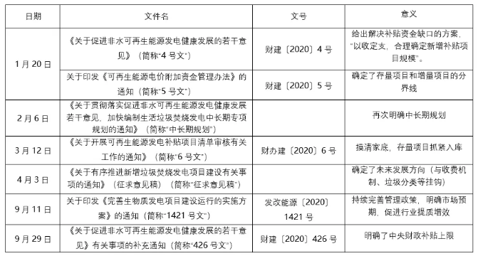 2020年以來,可再生能源發(fā)電補貼政策迎來系統(tǒng)改革,對垃圾焚燒行業(yè)發(fā)展造成一定影響。