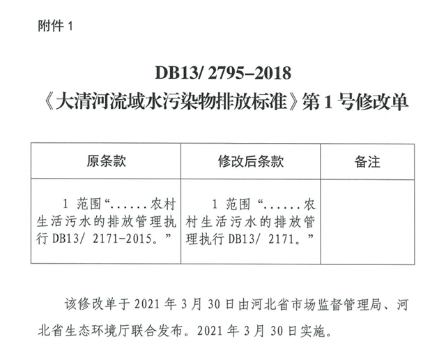 附件:1.DB13/ 2795-2018《大清河流域水污染物排放標(biāo)準(zhǔn)》第1號修改單