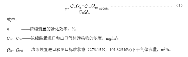 5.2.1正常工況下,進氣揮發(fā)性有機物濃度≥100mg/m3時,濃縮裝置凈化效率應(yīng)≥90%。