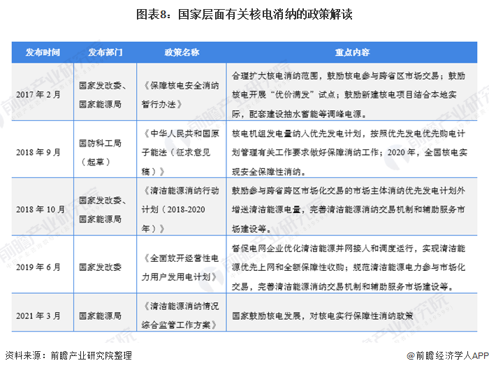 在核電消納方面,“十三五”以來,國家發(fā)改委、國家能源局等相關部門也陸續(xù)出臺相關政策推進核電消納工作,具體內容包括擴大核電消納范圍、實行保障性消納政策等。