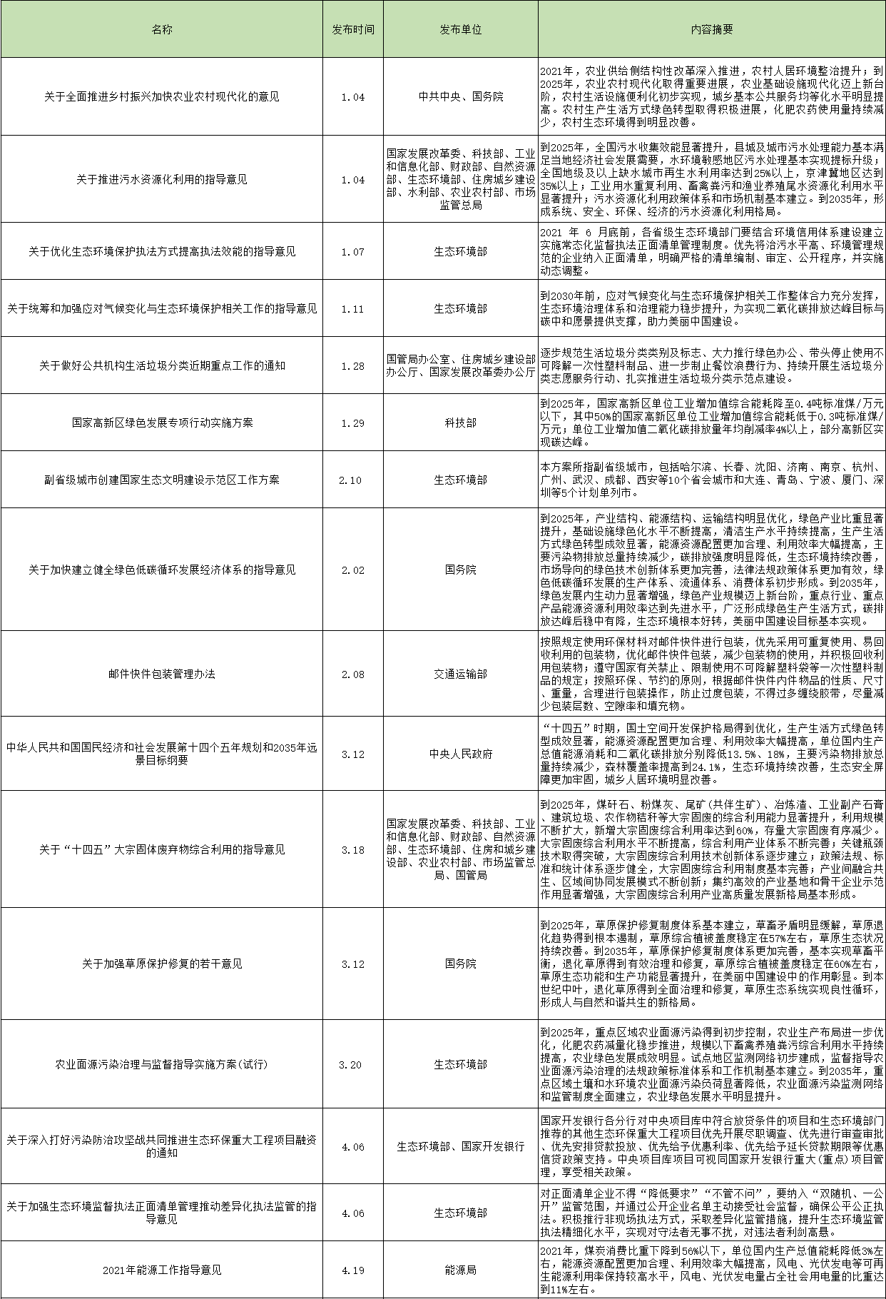 《關(guān)于統(tǒng)籌和加強(qiáng)應(yīng)對氣候變化與生態(tài)環(huán)境保護(hù)相關(guān)工作的指導(dǎo)意見》明確指出,要為實(shí)現(xiàn)二氧化碳排放達(dá)峰目標(biāo)與碳中和愿景提供支撐;《關(guān)于加快建立健全綠色低碳循環(huán)發(fā)展經(jīng)濟(jì)體系的指導(dǎo)意見》要求,到2025年,綠色低碳循環(huán)發(fā)展的生產(chǎn)體系、流通體系、消費(fèi)體系初步形成。