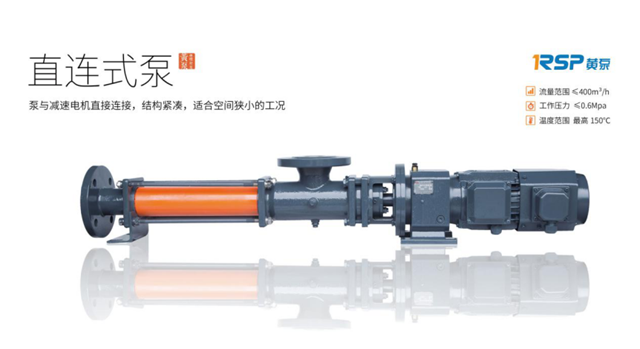 第四款直連式單螺桿泵泵體和減速電機(jī)直接連接,結(jié)構(gòu)緊湊,所需安裝空間更小,重量更輕,維修拆卸更簡便。適合輸送有固體顆粒或纖維,流動性較好或一般的介質(zhì)。