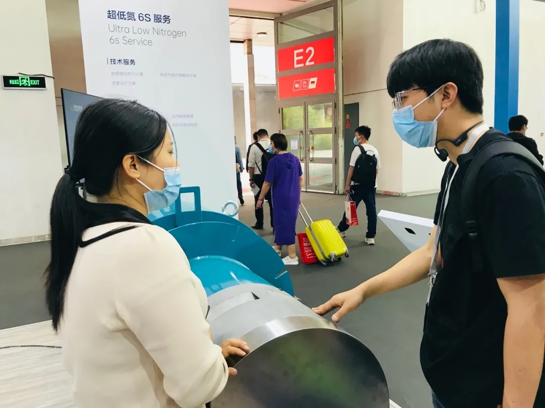 在產(chǎn)品展區(qū)內(nèi),不少專業(yè)觀眾對(duì)分體式超低氮燃燒器表現(xiàn)出濃厚興趣,紛紛駐足咨詢。該款設(shè)備融合了多級(jí)燃燒和煙氣內(nèi)循環(huán)技術(shù)(FIR);在工藝設(shè)計(jì)上優(yōu)化了風(fēng)道結(jié)構(gòu),采用間接旁路點(diǎn)火的方式;配置了空氣和燃料配比自控系統(tǒng),進(jìn)一步保障了節(jié)能“低碳”;獨(dú)特的結(jié)構(gòu)設(shè)計(jì),使得設(shè)備安裝便捷;可適配20t/h鍋爐,真正實(shí)現(xiàn)氮氧化物30mg/m³以下超低排放。