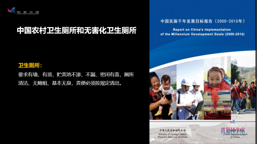 盡管在實(shí)現(xiàn)這個千年發(fā)展目標(biāo)的進(jìn)程中,最終的目標(biāo)沒有實(shí)現(xiàn),但是廁所的覆蓋率還在逐漸增加。反映到兒童死亡率上,即是死亡率的逐年下降。這是一個大好事,也給我們很多動力去堅(jiān)持不懈地做廁所的事情。更好的消息是——我們國家在千年發(fā)展目標(biāo)里發(fā)布了白皮書,宣布中國滿足了千年發(fā)展目標(biāo)的要求。