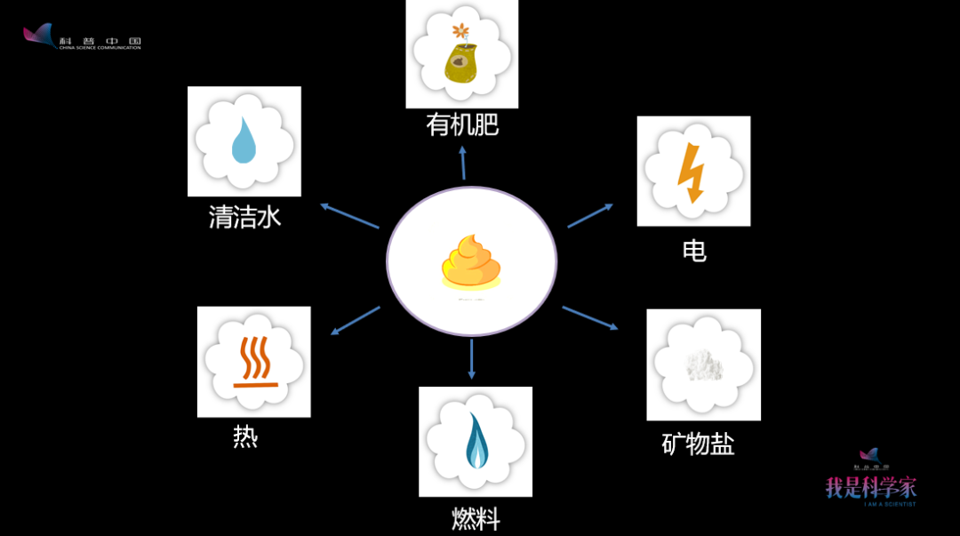 糞便可以做肥料,但是要處理,保證它安全。還有氮肥、磷肥、鉀肥,我們種莊稼的時候加了這些肥料,長成了糧食,長成了蔬菜;或者通過喂飼料,養(yǎng)成了雞鴨魚肉。這些元素都進(jìn)到你的家庭,然后90%又跑到糞便里去了。