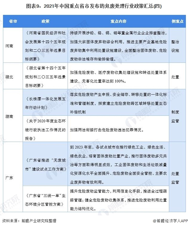 重點(diǎn)省市危廢處理最新推動政策匯總