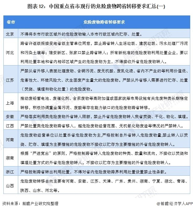 重點(diǎn)省市危廢跨省轉(zhuǎn)移要求匯總