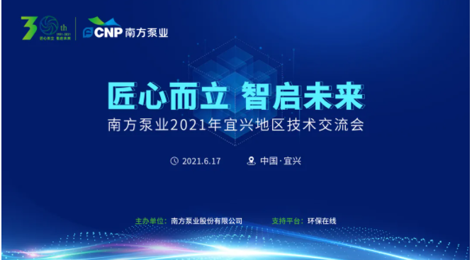 鎖定“匠心而立 智啟未來”南方泵業(yè)2021年宜興地區(qū)技術(shù)交流會,鎖定宜興環(huán)保城,鎖定環(huán)保在線,6月17日,咱們不見不散!