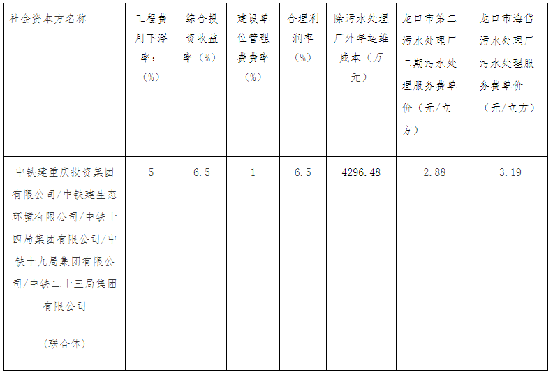 2021年6月23日,中鐵建重慶投資集團有限公司/中鐵建生態(tài)環(huán)境有限公司/中鐵十四局集團有限公司/中鐵十九局集團有限公司/中鐵二十三局集團有限公司(聯合體)預中標山東省煙臺市龍口市人居環(huán)境提升工程PPP項目。