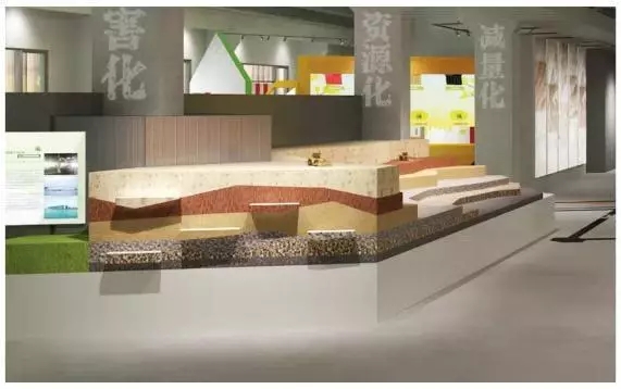 “衛(wèi)生填埋”沙盤,則是用仿地質(zhì)材料,直觀展示垃圾填埋操作工藝,包括滲瀝液如何收集與處理、填埋氣體如何利用等,模型背面設(shè)置可開啟的抽屜,展示可降解垃圾填埋若干年后的標(biāo)本。