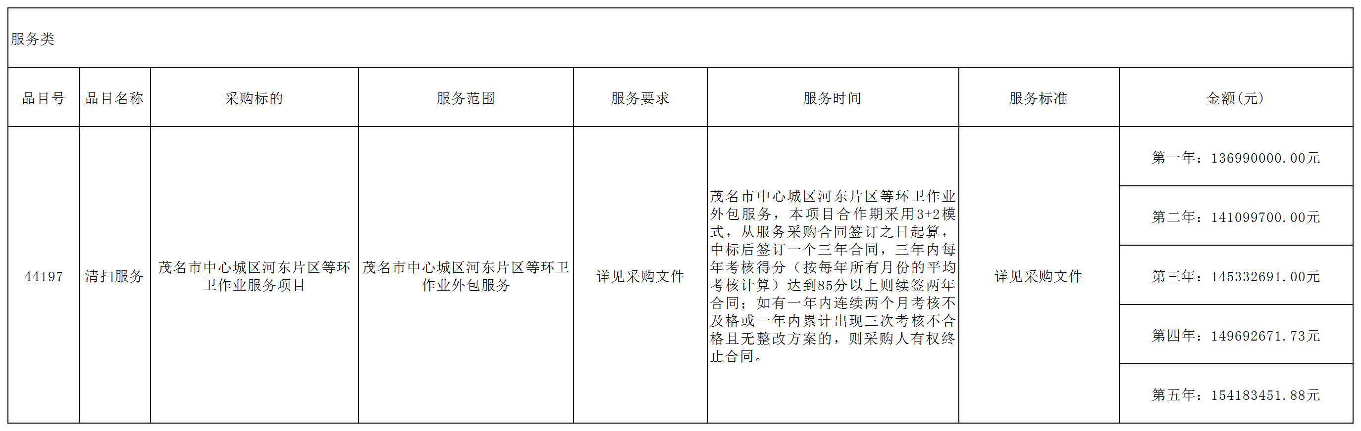 原標(biāo)題:茂名市茂南區(qū)城市管理和綜合執(zhí)法局茂名市中心城區(qū)河?xùn)|片區(qū)等環(huán)衛(wèi)作業(yè)服務(wù)項(xiàng)目(采購編號(hào):ZC21N06N0881)中標(biāo)結(jié)果公告