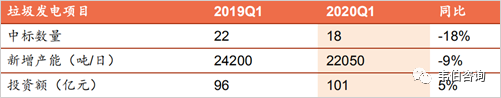 圖表9:2019年Q1-2020年Q1全國垃圾發(fā)電項(xiàng)目中標(biāo)情況