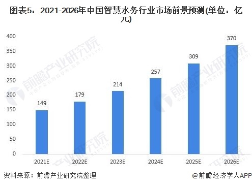 隨著我國智慧城市建設(shè)的推進,供水現(xiàn)狀、以及水務(wù)管理中存在的問題(包括水務(wù)管理過程中控制漏損等問題),為智慧水務(wù)營造了發(fā)展環(huán)境。而智慧水務(wù)還有很大的市場可開發(fā),如智慧水務(wù)行業(yè)的發(fā)展正在積極探索如何實現(xiàn)與人工智能的結(jié)合,進一步實現(xiàn)人機交互的綜合應(yīng)用,未來我國智慧水務(wù)前景可觀。預(yù)計到2026年,我國智慧水務(wù)行業(yè)的市場規(guī)模將達到370億元。