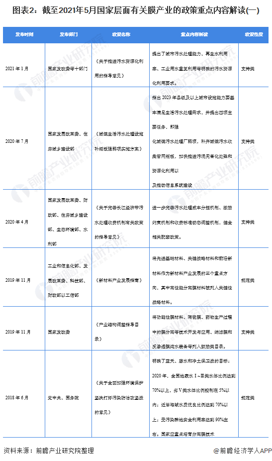 圖表2:截至2021年5月國家層面有關(guān)膜產(chǎn)業(yè)的政策重點內(nèi)容解讀(一)