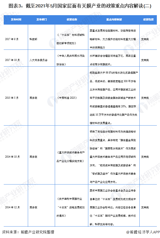 圖表3:截至2021年5月國家層面有關(guān)膜產(chǎn)業(yè)的政策重點內(nèi)容解讀(二)