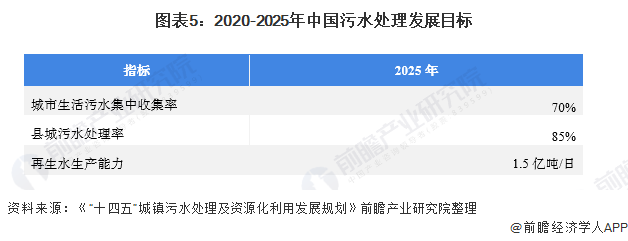 圖表5:2020-2025年中國污水處理發(fā)展目標(biāo)