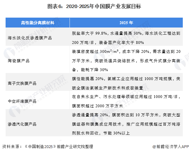 圖表6:2020-2025年中國膜產(chǎn)業(yè)發(fā)展目標(biāo)