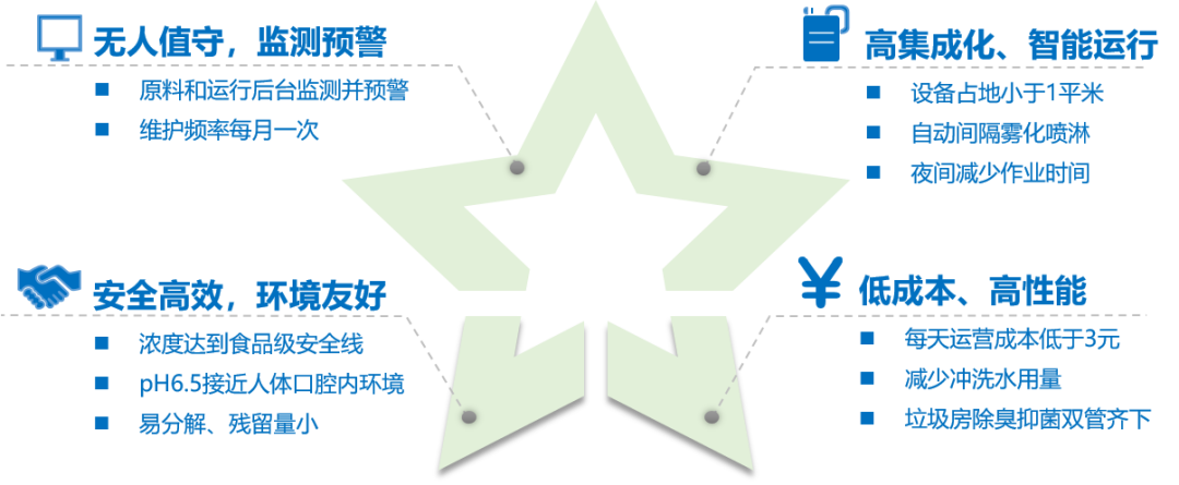 測(cè)的準(zhǔn)是后續(xù)防控的基礎(chǔ),而溯源工作是關(guān)鍵支撐,尤其是園區(qū)的惡臭溯源。首先通過現(xiàn)場(chǎng)勘查園區(qū)的污染情況進(jìn)行摸底,建立園區(qū)“一企一檔”;其次在園區(qū)敏感點(diǎn)或企業(yè)邊界布設(shè)監(jiān)測(cè)站,建立園區(qū)立體監(jiān)測(cè)網(wǎng);此外通過便攜式在線監(jiān)測(cè)設(shè)備開展走航觀測(cè),確定重污染區(qū)域。通過構(gòu)建溯源模型,對(duì)監(jiān)測(cè)子站的數(shù)據(jù)、園區(qū)地形地貌、企業(yè)基礎(chǔ)信息等進(jìn)行匹配和計(jì)算,初判預(yù)警數(shù)據(jù)的排放源。針對(duì)園區(qū)內(nèi)各污染因子設(shè)定對(duì)應(yīng)的預(yù)警閾值,構(gòu)建園區(qū)多級(jí)預(yù)警體系,自動(dòng)觸發(fā)大氣污染溯源系統(tǒng),形成“監(jiān)測(cè)組網(wǎng)-預(yù)測(cè)預(yù)警-溯源管控”的問題閉環(huán)。未來在源頭除臭方面,自動(dòng)化除臭裝備也有較大的發(fā)展空間。其中以次氯酸水為代表,一方面其具有強(qiáng)勁的氧化能力,能真正分解惡臭污染物氣體分子。此外能迅速摧毀吸附于細(xì)胞膜表面上的病毒蛋白質(zhì)成分,使其無法再傳染病菌。惡臭監(jiān)測(cè)與控制“標(biāo)準(zhǔn)+α”優(yōu)化方案