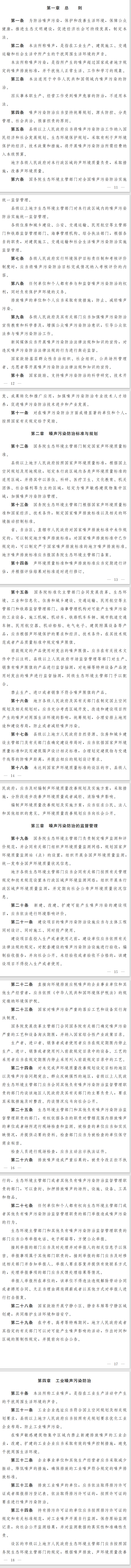 第十五條 國務院標準化主管部門會同發(fā)展改革、生態(tài)環(huán)境、工業(yè)和信息化、住房和城鄉(xiāng)建設、交通運輸、民用航空等主管部門和鐵路監(jiān)督管理部門、海事管理機構(gòu)對可能產(chǎn)生噪聲污染的工業(yè)設備、施工機械、機動車、鐵路機車車輛、城市軌道交通車輛、民用航空器、機動船舶、電氣電子、建筑附屬設備等產(chǎn)品,應當根據(jù)聲環(huán)境保護的要求和經(jīng)濟、技術(shù)條件,在其技術(shù)規(guī)范或者產(chǎn)品質(zhì)量標準中規(guī)定噪聲限值。
