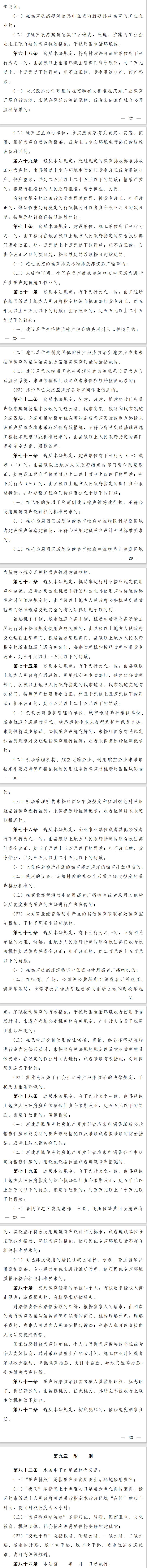 第十七條 縣級以上地方人民政府自然資源、住房和城鄉(xiāng)建設主管部門及有關(guān)部門在確定建設布局時,應當依據(jù)國家聲環(huán)境質(zhì)量標準和民用建筑隔聲設計相關(guān)標準,合理劃定建筑物與交通干線等的防噪聲距離,并提出相應的規(guī)劃設計要求。