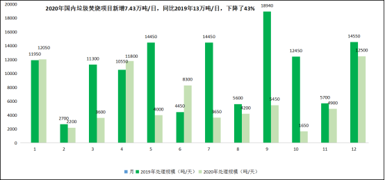 圖四:2020年國(guó)內(nèi)垃圾焚燒項(xiàng)目中標(biāo)新增7.43萬(wàn)噸/日產(chǎn)能▼